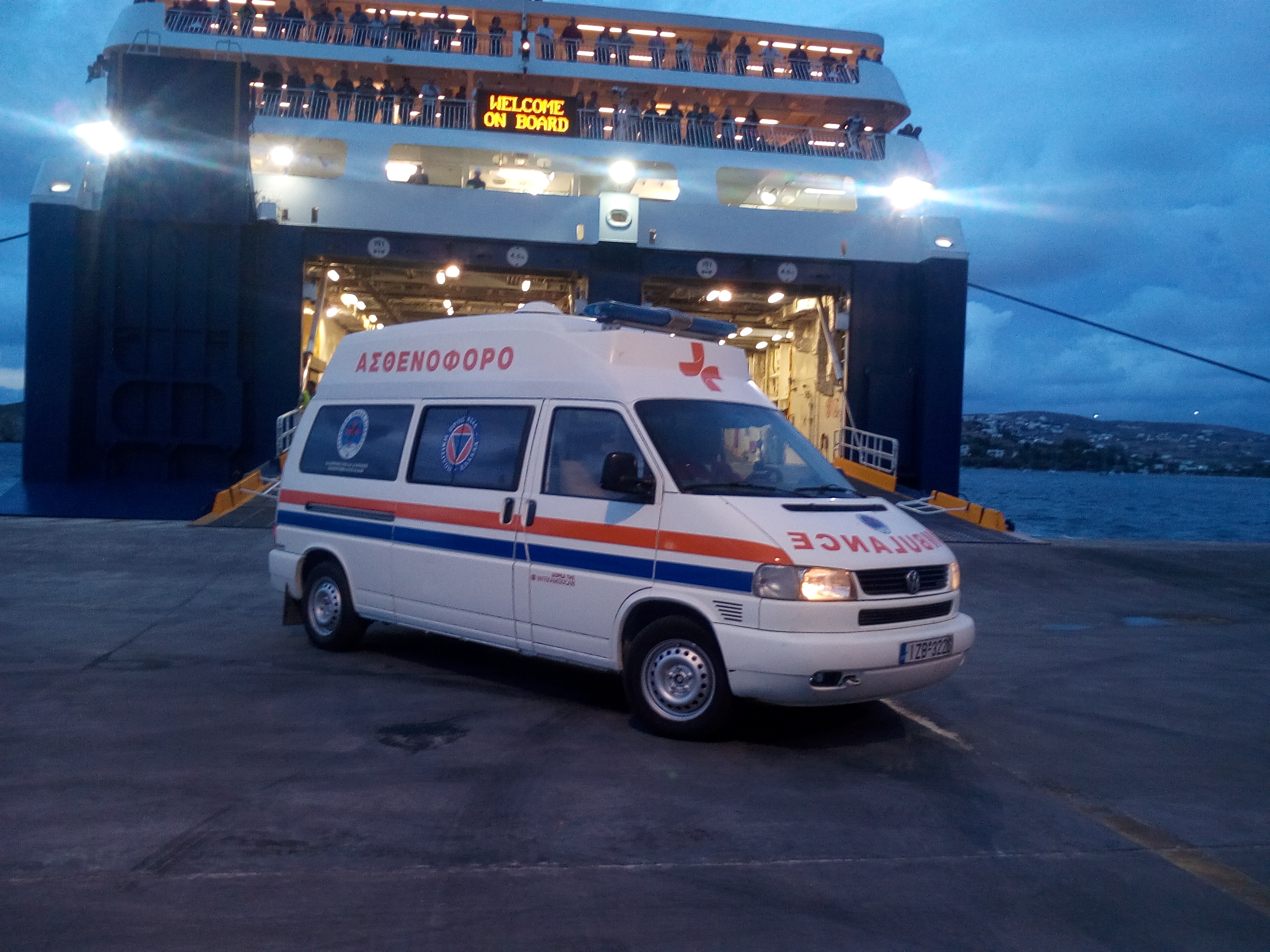 Διακομιδή ασθενούς από το Κέντρο Υγείας στο BLUE STAR DELOS, πραγματοποίησαν το απόγευμα του Σαββάτου 30-9-2017, τα μέλη της ΕΟΔ Κυκλάδων. Το ασθενοφόρο του ΕΚΑΒ βρισκόταν σε άλλο περιστατικό.