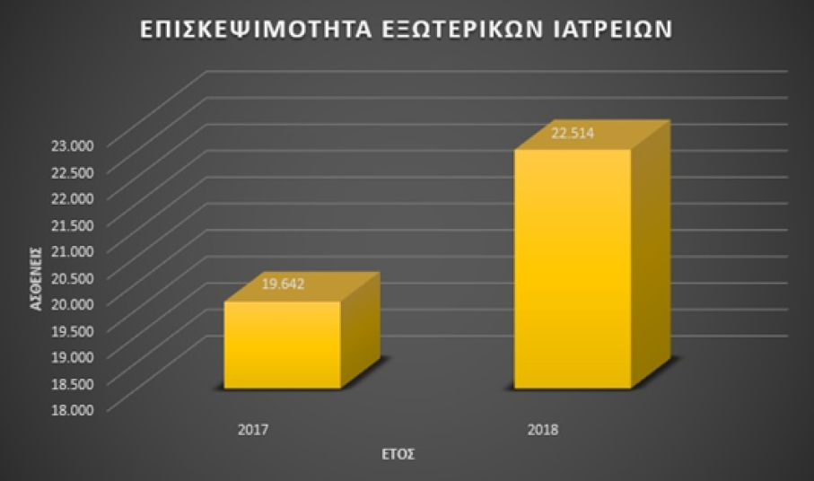 Σύμφωνα με τα επίσημα στοιχεία από το νοσοκομειακό λογισμικό του Γ.Ν. Θήρας, που αφορούν στο πρώτο 7μηνο, η επισκεψιμότητα του νοσοκομείου μας συνεχίζει την ανοδική της πορεία και για το 2018, γεγονός που σημαίνει ότι όλο και περισσότεροι άνθρωποι, τόσο κάτοικοι του νησιού, όσο και τουρίστες, μας εμπιστεύονται για να λάβουν υπηρεσίες Υγείας.