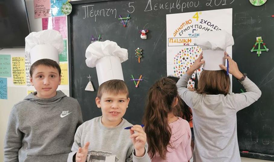 Προσκεκλημένη των εκπαιδευτικών της Γ’ Τάξης του 4ου Δημοτικού Σχολείου Ερμούπολης, Ρένας Λουιζίδου και Άννας Ροσσολάτου ήταν η σεφ Ιωάννα Σταμούλου.