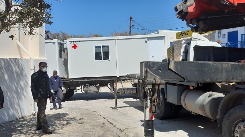Κατόπιν εισήγησης του Αντιπεριφερειάρχη Κυκλάδων κ. Γ. Λεονταρίτη στην Οικονομική Επιτροπή της Περιφέρειας, στις 1 Απριλίου 2020, στο πλαίσιο των μέτρων για την αντιμετώπιση του κορωνοϊού, αποφασίστηκε και δρομολογήθηκε διοικητικά η παραγγελία των παραπάνω οικίσκων από τις Υπηρεσίες της Περιφέρειας μέχρι και την παράδοσή τους στο Κ.Υ., σήμερα Παρασκευή 10 Απριλίου 2020.