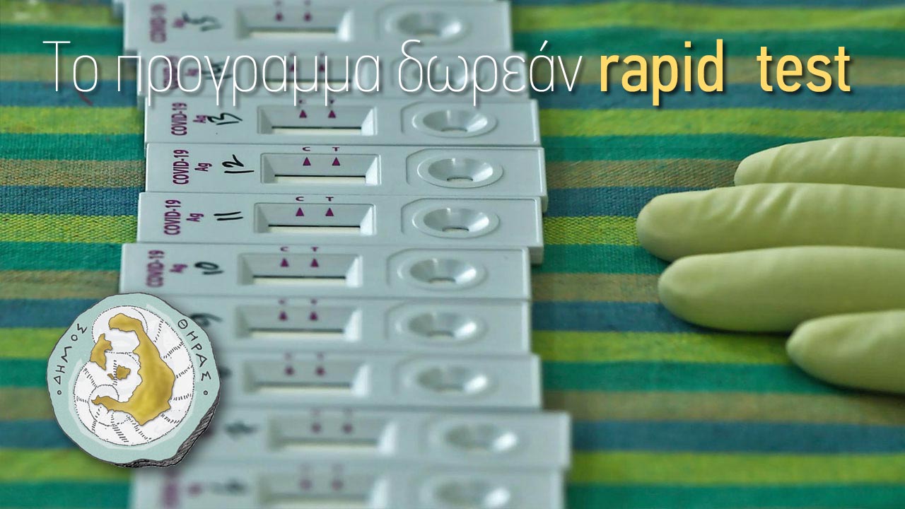 Το πρόγραμμα των δωρεάν διαγνωστικών rapid test από το Δήμο Θήρας σε συνεργασία με το Γενικό Νοσοκομείο Θήρας, γι' αυτή την εβδομάδα από Δευτέρα 24 έως και Σάββατο 29 Μαΐου 2021, έχει ως εξής.