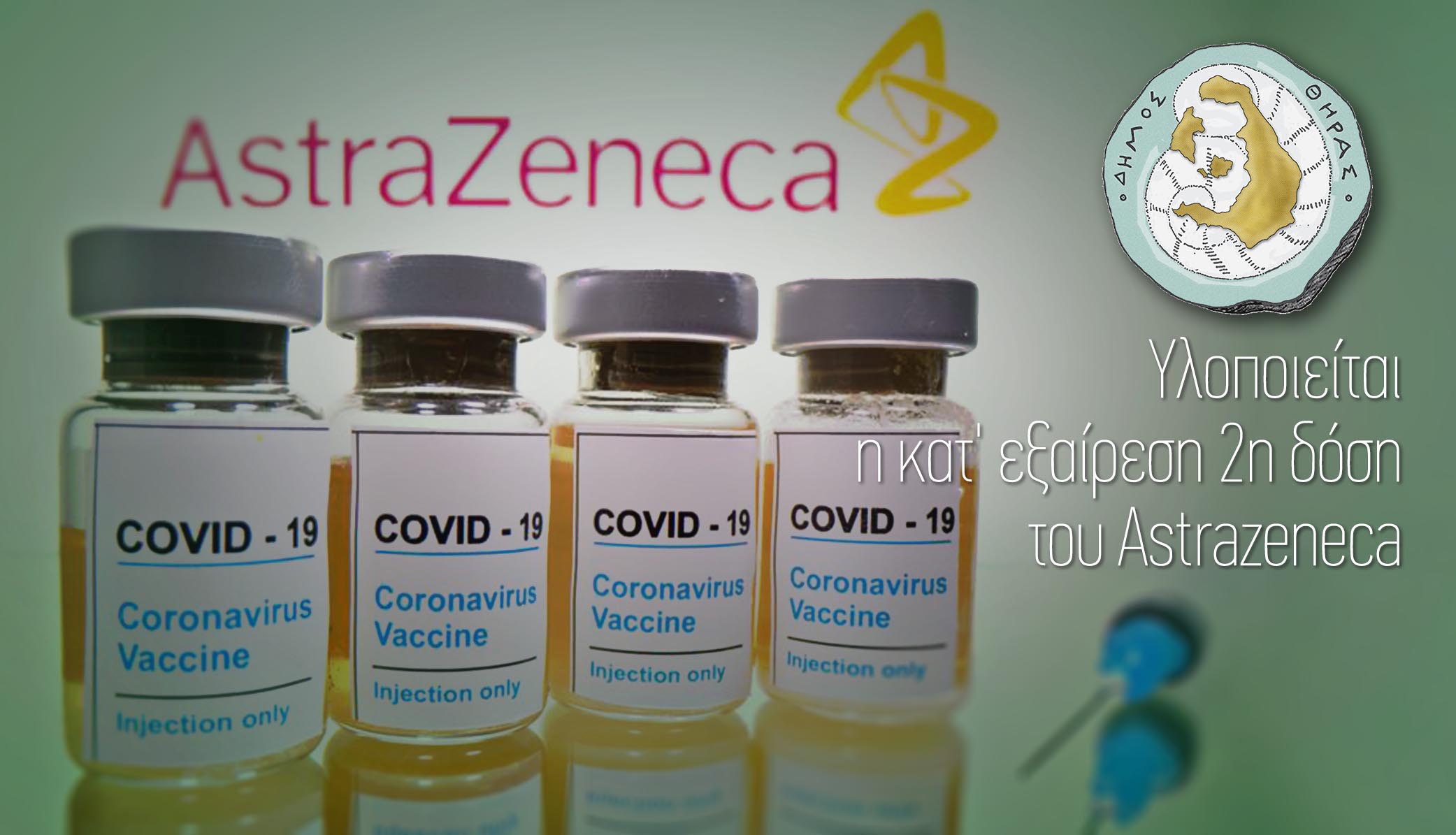 Ξεκίνησε και υλοποιείται με επιτυχία, ο κατ' εξαίρεση εμβολιασμός, της 2ης δόσης του εμβολίου Astrazeneca από το Γενικό Νοσοκομείο Θήρας, ύστερα από πρωτοβουλία που ανέλαβε ο Δήμος Θήρας προς το Υπουργείο Υγείας και σε συνεργασία με το Γ.Ν. Θήρας, για την εξυπηρέτηση των πολιτών που είχαν πραγματοποιήσει την 1η δόση σε άλλη περιοχή.