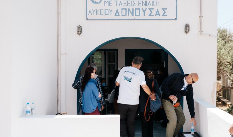 Την Τετάρτη 11 Μαΐου, στη Δονούσα, διενεργήθηκαν τα εγκαίνια του νέου γηπέδου μπάσκετ, το οποίο υλοποιήθηκε με τη συμβολή της ομάδας Αιγαίου. Στα εγκαίνια παρεβρέθη πλήθος κόσμου, ανάμεσά τους και ο μπασκετμπολίστας Γιάννης Μπουρούσης, ο οποίος δήλωσε: « Χαίρομαι πάρα πολύ που βρίσκομαι στη Δονούσα με την ομάδα Αιγαίου για να εγκαινιάσουμε αυτό το γήπεδο μπάσκετ». Στη συνέχεια, συμμετείχε σε φιλικό αγώνα με τα παιδιά. Για τα «Σουτάκια Αιγαίου» όπου οι μαθητές της Ελληνογαλλικής Σχολής Ουρσουλινών συνδέθηκαν διαδικτυακά με το νέο γήπεδο και με μαθητές του σχολείου της Δονούσας για να παίξουν μαζί, η Κατερίνα Πολυχρονοπούλου, διευθύντρια του σχολείου της Δονούσας δήλωσε: «Η δράση που πραγματοποίησε σήμερα η ομάδα Αιγαίου με τις Ουρσουλίνες ήταν πάρα πολύ ενδιαφέρουσα, τα παιδιά ενθουσιάστηκαν», επιβεβαιώνοντας το ρόλο που παίζουν τέτοιες δράσεις στη ψυχολογία των παιδιών.