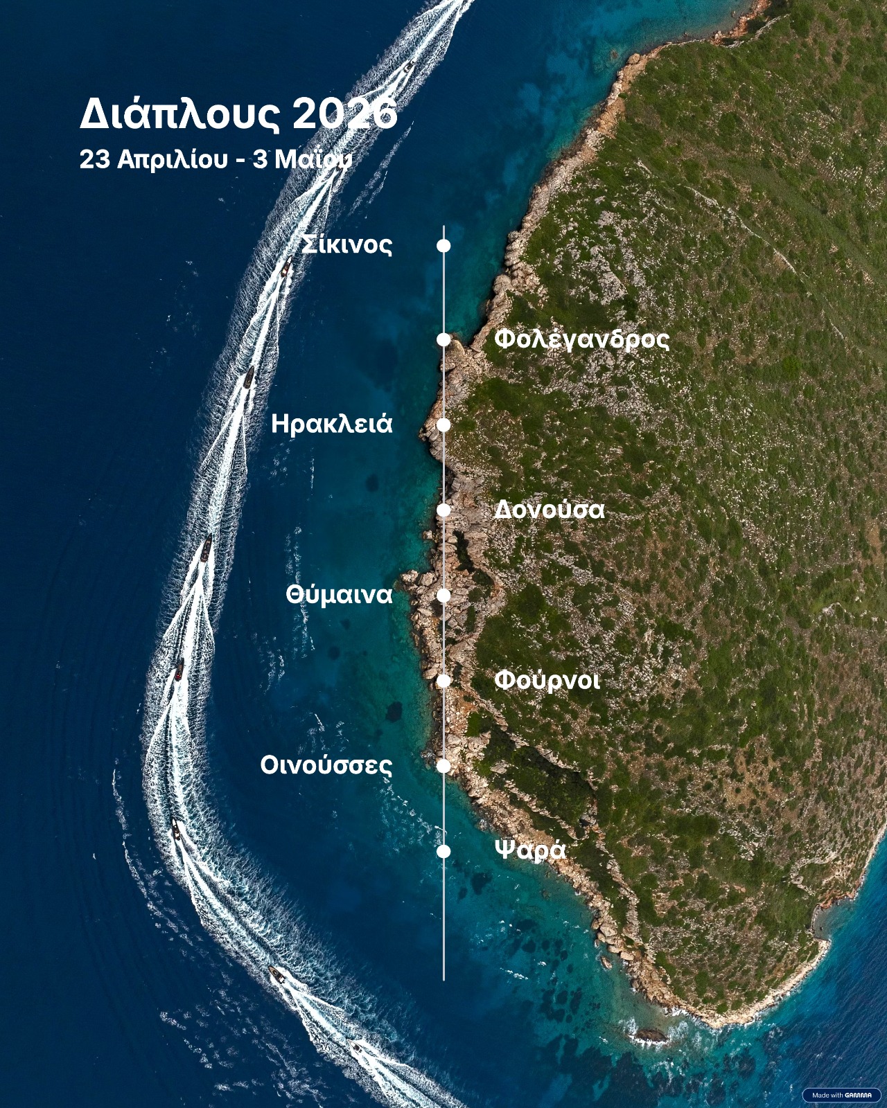 Συγκεκριμένα, ο Διάπλους θα πραγματοποιηθεί σε Σίκινο, Φολέγανδρο, Ηρακλειά, Δονούσα, Θύμαινα, Φούρνους, Οινούσσες και Ψαρά.