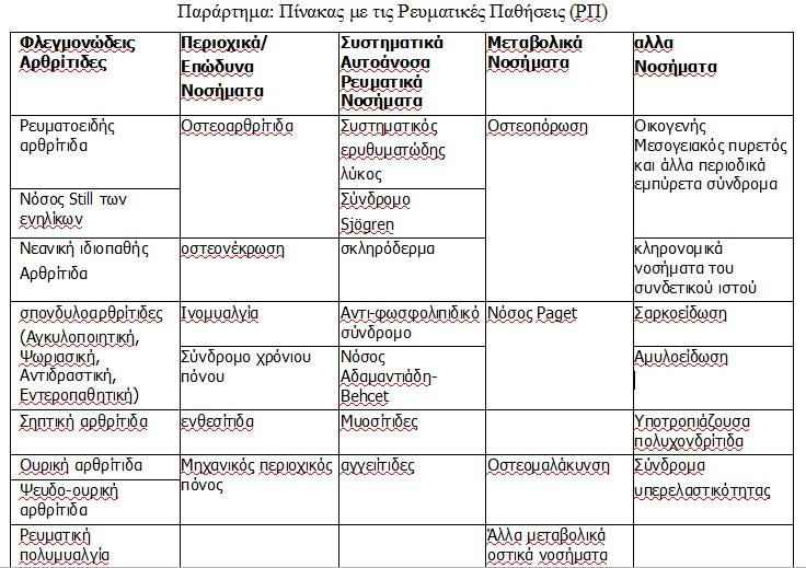 Στην Ελλάδα οι Ρευματοπαθείς ανέρχονται περίπου σε 3.000.000. Από αυτούς, το 13% του πληθυσμού πάσχει από Οστεοαρθρίτιδα, 11% από Οσφυαλγία, 4,8% από Αυχεναλγία, 4,5% από Οστεοπόρωση και 2,1% από τα σοβαρά Αυτοάνοσα Φλεγμονώδη Συστηματικά Ρευματικά Νοσήματα, ενώ 1 στα 1.000 παιδιά πάσχουν από Νεανική Αρθρίτιδα.