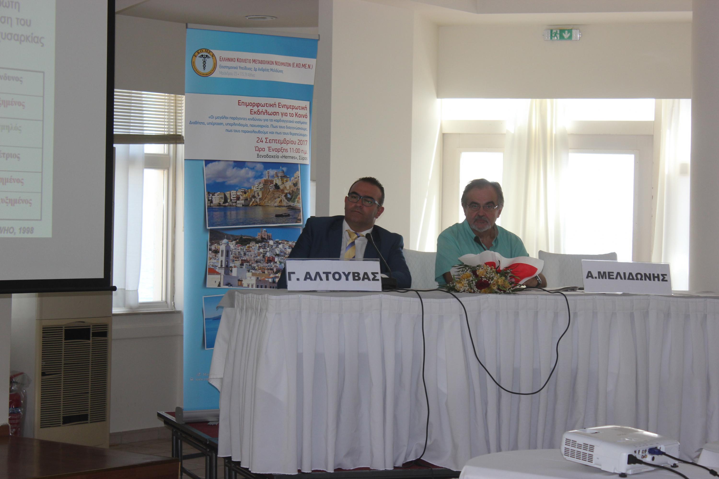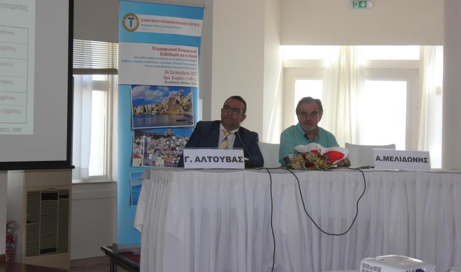 Με μία πλούσια και άκρως χρήσιμη σε περιεχόμενο επιμορφωτική ενημερωτική εκδήλωση για το κοινό της Σύρου ολοκληρώθηκε η 18η Επιστημονική Εκδήλωση του Ελληνικού Κολλεγίου Μεταβολικών Νοσημάτων (ΕΚΟΜΕΝ) την Κυριακή το πρωί, στην πρωτεύουσα των Κυκλάδων, μετά από τις επιστημονικές εργασίες τριών ημερών, οι οποίες και προηγήθηκαν με αξιοσημείωτη επιτυχία στο ξενοδοχείο “Ερμής”.
