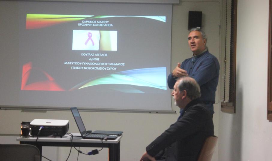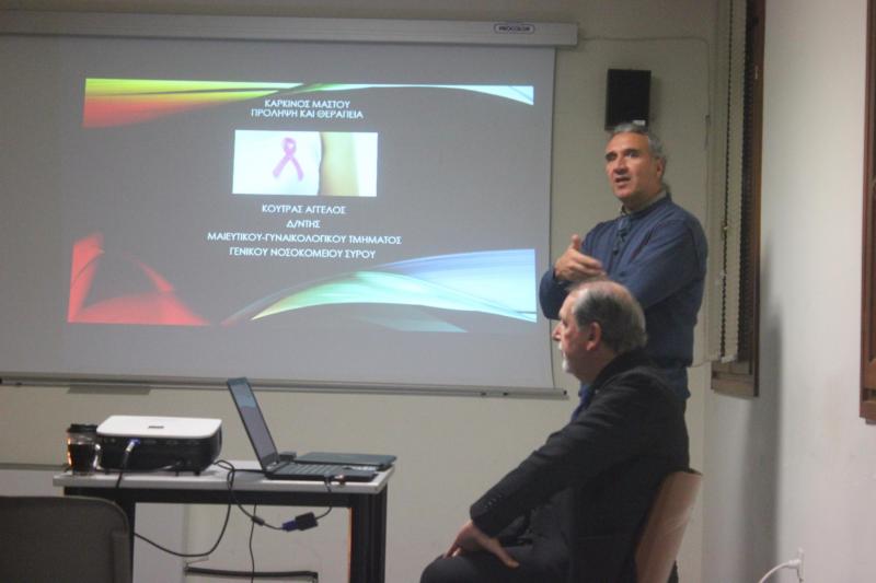 Στους τρόπους πρόληψης και θεραπείας του Καρκίνου του Μαστού, που αποτελεί την πιο συχνή κακοήθεια στο γυναικείο πληθυσμό αναφέρθηκε ο Διευθυντής του Μαιευτικού – Γυναικολογικού Τμήματος του Γενικού Νοσοκομείου Σύρου Άγγελος Κούτρας, στο πλαίσιο των ενημερωτικών εκπαιδευτικών μαθημάτων προς τους πολίτες του νησιού.