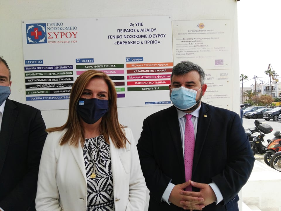 Η ίδια αφού ενημερώθηκε αναλυτικά για τη λειτουργία του Νοσοκομείου και τις υπηρεσίες που προσφέρονται τόσο προς τους Συριανούς, όσο όμως και προς τους Κυκλαδίτες γενικότερα, γνωστοποίησε την πρόθεση του Υπουργείου να υπάρξει ανταπόκριση για ορισμένα αιτήματα και ανάγκες, όπως μεταξύ άλλων, η στήριξη Τμημάτων με προσωπικό, καθώς και η ενδυνάμωση του υπάρχοντος προσωπικού, το οποίο έχει ριχτεί στη “μάχη” κατά της πανδημίας.