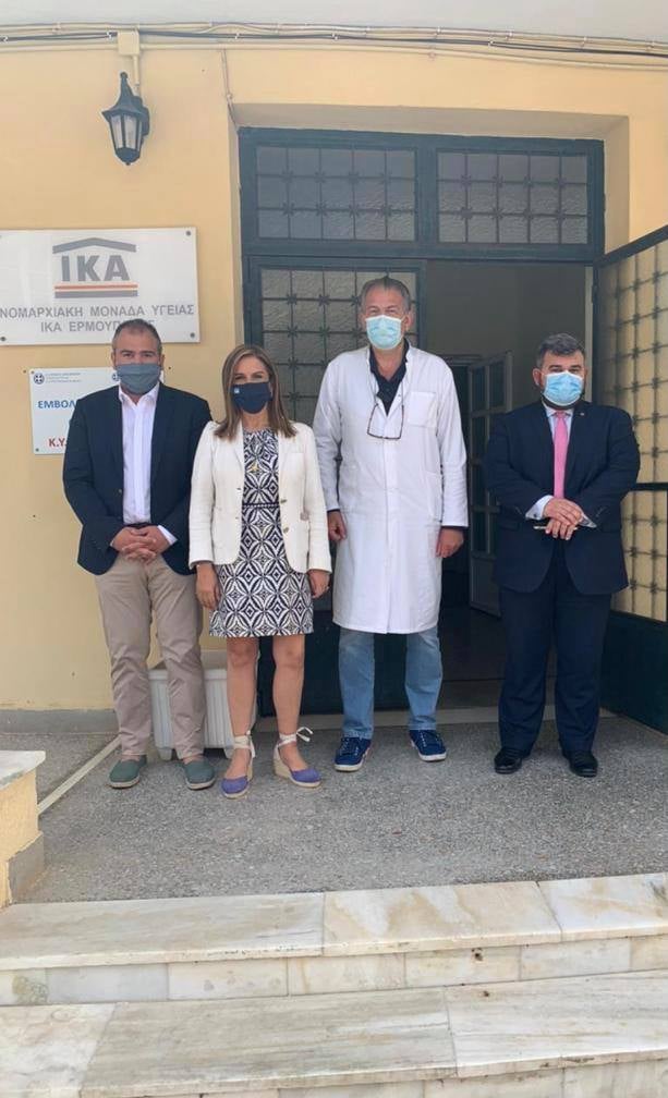 Σημαντικός σταθμός στο πρόγραμμά της αποτέλεσε και η επίσκεψή της στο Κέντρο Υγείας Σύρου (πρώην ΙΚΑ), στο πλαίσιο της παρακολούθησης της διαδικασίας εμβολιασμού, καθώς πλέον ξεκίνησε η πραγματοποίηση των εμβολιασμών με τα μονοδοσικά εμβόλια της Johnson & Johnson.