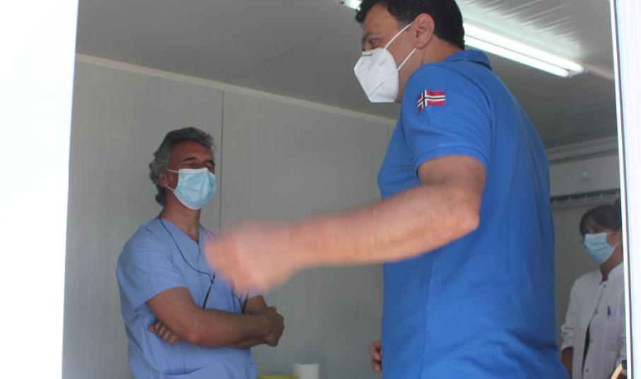 Κατά τη διάρκεια της παραμονής του στο Νοσοκομείο επισκέφθηκε τα κοντέινερ στα οποία εμβολιάζονται οι πολίτες με τα ήδη προγραμματισμένα ραντεβού για τα εμβόλια της Pfizer και της Johnson & Johnson ενώ είχε την ευκαιρία να συνομιλήσει με αρκετά νεαρά άτομα καθώς και με υγειονομικούς.
