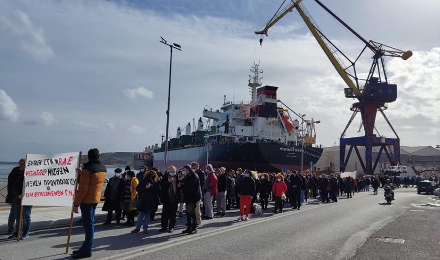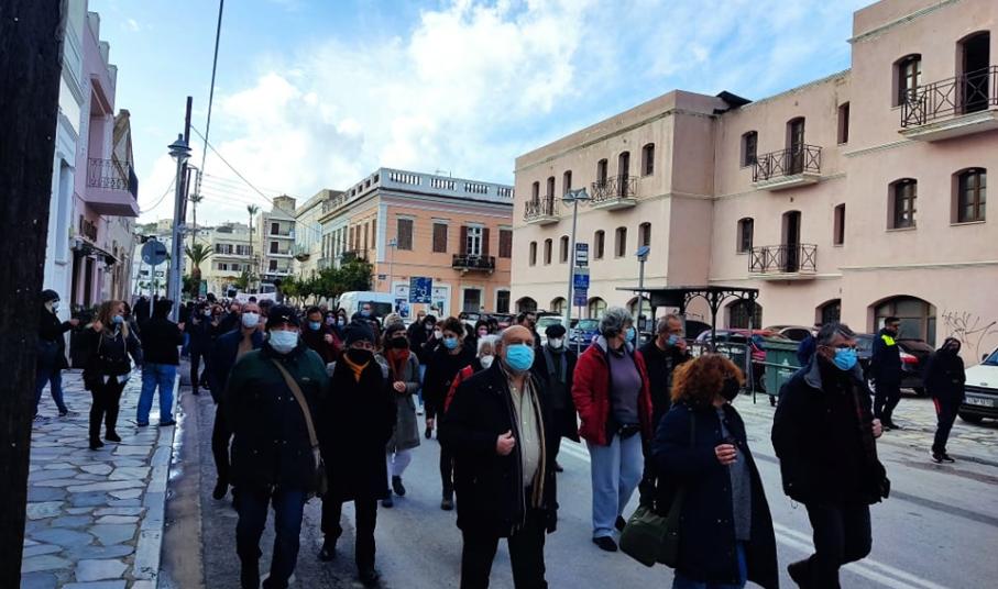 Η πορεία ξεκίνησε από το Νοσοκομείο και κατευθύνθηκε προς το κέντρο της Ερμούπολης.