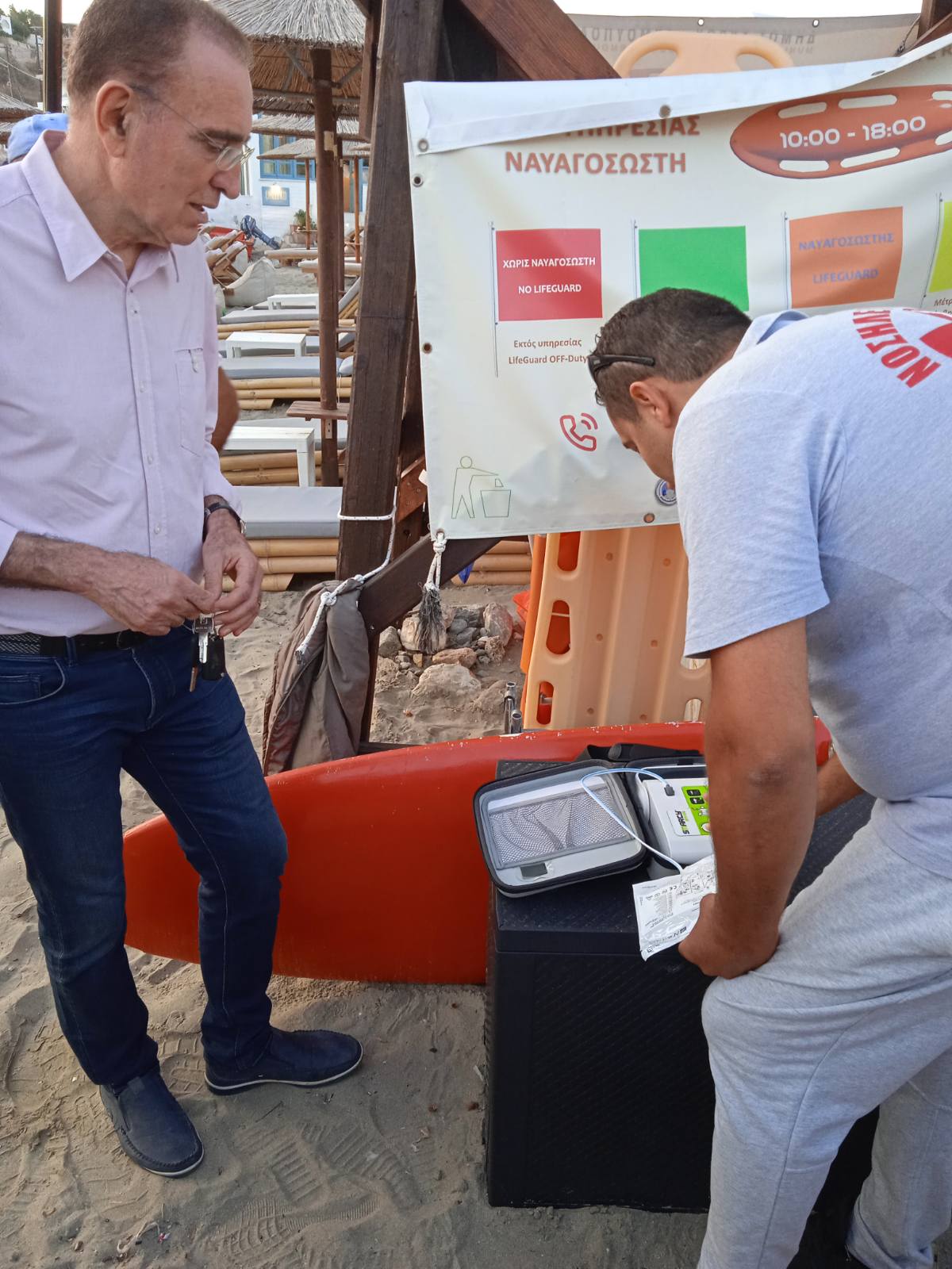 Τον απινιδωτή παρέλαβαν χθες, Τρίτη 30 Αυγούστου 2022, ο Δήμαρχος Σύρου – Ερμούπολης κ. Νικόλαος Λειβαδάρας, ο Αντιδήμαρχος Τεχνικών Υπηρεσιών κ. Μηνάς Αληφραγκής και ο Πρόεδρος της Τοπικής Κοινότητας Βάρης κ. Νικόλαος Βαρθαλίτης.