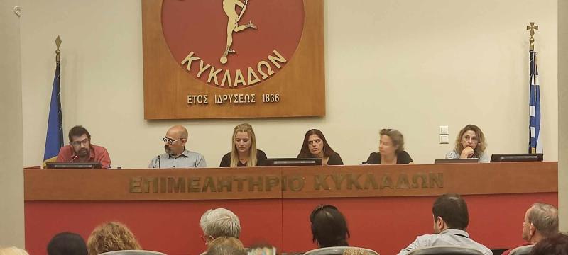 Αξίζει να αναφερθεί πως στην αίθουσα του Επιμελητηρίου Κυκλάδων βρέθηκαν ακόμη η δήμαρχος Σίφνου, Μαρία Ναδάλη και ο δήμαρχος Κιμώλου, Κωνσταντίνος Βεντούρης.