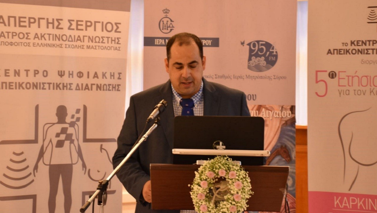 Μιλώντας για την εκδήλωση του Σαββάτου της 25η Οκτωβρίου, αλλά πολύ περισσότερο για τη συνεργασία του για πρώτη φορά με τον Δήμο Σύρου - Ερμούπολης, υπογράμμισε ότι “η συγκεκριμένη συνδιοργάνωση έκλεισε από τα τέλη Ιουλίου, έπειτα από μία συνάντηση που είχα με την αντιδήμαρχο Πολιτισμού, κα. Μενδρινού και η οποία, μάλιστα, έχει έντονη επιθυμία να αναπτυχθεί και να καθιερωθεί πλέον σε ετήσια βάση. Θέλω να εκφράσω τις θερμές μου ευχαριστίες στο πρόσωπό της γιατί είναι η πρώτη φορά που με προσεγγίζουν θεσμικοί παράγοντες της τοπικής μας αυτοδιοίκησης. Αυτή η κίνηση αποδεικνύει ότι υπάρχουν άνθρωποι, όπως η αντιδήμαρχος Πολιτισμού, που ενδιαφέρονται για την ενημέρωση, αλλά και για την πρόληψη πάνω σε ένα πολύ σημαντικό θέμα υγείας”.