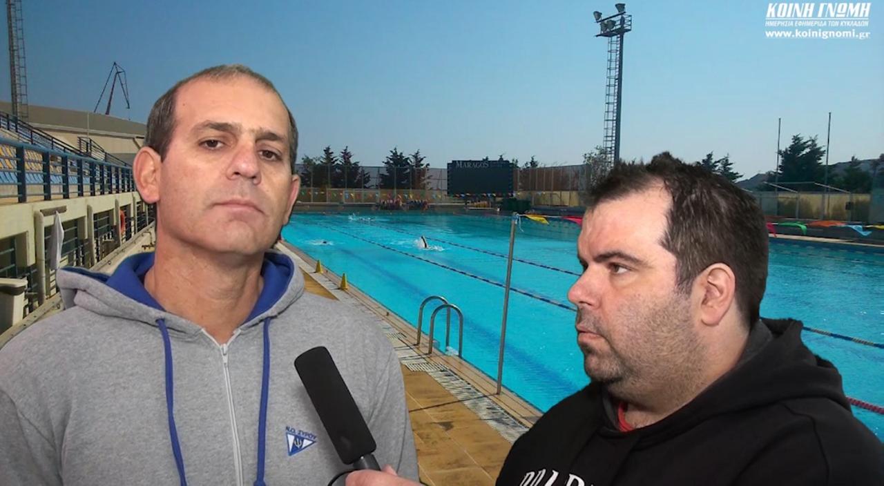 "Πράγματι όλα στρέφονται γύρο από την πισίνα. Όσο η πισίνα είναι ανοικτή, τόσο εγώ όσο και όλο το συμβούλιο και οι έφοροι βλέπουν μία περισσή θέληση και αγάπη προς το άθλημα και το υγρό στοιχείο. Οι Συριανοί αγαπούν το πόλο και ίσως αυτό δικαιολογείται από την μεγάλη ιστορία που έχει ο Όμιλος και τμήμα του πόλο με συμμετοχές σε εθνικές κατηγορίες. Το πόλο είναι ένα άθλημα που έχει στις καρδιές των Συριανών μία ξεχωριστή θέση και φυσικά χωρίς πισίνα είναι πάρα πολύ δύσκολο να κρατήσουμε... ζεστά τα παιδιά και μιας και μου δίνεται η ευκαιρία θα ήθελα να ευχαριστήσω πάνω από όλα τους γονείς τους και για την εμπιστοσύνη που δείχνουν στο πρόσωπό μου. Κάποια στιγμή όμως θα πρέπει να σταματήσει αυτό και οι αθλητές να κάνουν προπόνηση στην πισίνα, αλλιώς δε νομίζω να έχουμε και πολλά περιθώρια βελτίωσης στο συγκεκριμένο άθλημα. Το πόλο είναι ένα δύσκολο άθλημα κι αυτό το διαπίστωσαν για πρώτη φορά τα παιδιά στους αγώνες που πραγματοποιήθηκαν πριν από μερικές ημέρες. Είναι ένα άθλημα που για να ανταπεξέλθεις χρειάζεται πολύ προπόνηση, καθώς σ' αυτές τις κατηγορίες μπορεί να παίξεις και δύο παιχνίδι την ημέρα. Θέλεις σκληρή προπόνηση, προετοιμασία, θέλει καλή φυσική κατάσταση και χωρίς πισίνα αυτό είναι πάρα πολύ δύσκολο να συνεχιστεί. Το έχουμε κάνει πολλά χρόνια αυτό, είμαστε εκτός πισίνας περίπου τέσσερα χρόνια τώρα και νομίζω ότι δεν έχουμε και πολλά περιθώρια να το συνεχίσουμε αυτό το πράγμα. Μεταφέρω την επιθυμία των παιδιών, που κάποιοι μου το είπαν ξεκάθαρα πως θέλουν να κάνουν προπόνηση στην πισίνα. Ειδικά τώρα που είδαν τις συνθήκες που επικρατούσαν στο Εθνικό κολυμβητήριο, μιας κι εκεί κάνει προπόνηση ο Ολυμπιακός και η Εθνική ομάδα, θέλουν περισσότερο να κάνουν προπόνηση μέσα στο νερό. Από εκεί και πέρα η φιλοξενία μας ήταν τέλεια κι ευχαριστώ για τις καλές τους προθέσεις. Τώρα θα πρέπει να φανταστούμε ένα παιδί επιστρέφοντας από τους αγώνες και τις συνθήκες που επικρατούσαν εκεί, στην καθημερινότητα του νησιού με το κολυμβητήριο να είναι κλειστό. Η επόμενη μέρα, περιμένουμε κι εμείς να δούμε γιατί υπάρχουν διοικητικές εξελίξεις, υπάρχουν εκλογές στο τέλος του μήνα και εγώ από την πλευρά μου θέλω να συζητήσω με τους ανθρώπους του ομίλου για το επόμενο βήμα μας. Αυτά τα παιδιά δεν πρέπει να πάνε χαμένα, έχουν δείξει ότι πάνω από όλα αγαπούν τον αθλητισμό κι αυτό που ζητούν δεν είναι άλλο από το να είναι κοντά στους αθλητικούς χώρους και γι' αυτό άλλωστε είναι αυτοί οι χώροι. Το κολυμβητήριο της Ερμούπολης είναι μέσα στα πέντε καλύτερα της Ελλάδας και πρέπει να γίνει ένας χώρος που να λειτουργεί, ώστε να μαζεύει την νεολαία. Όχι να είναι κλειστό κι έρημο".