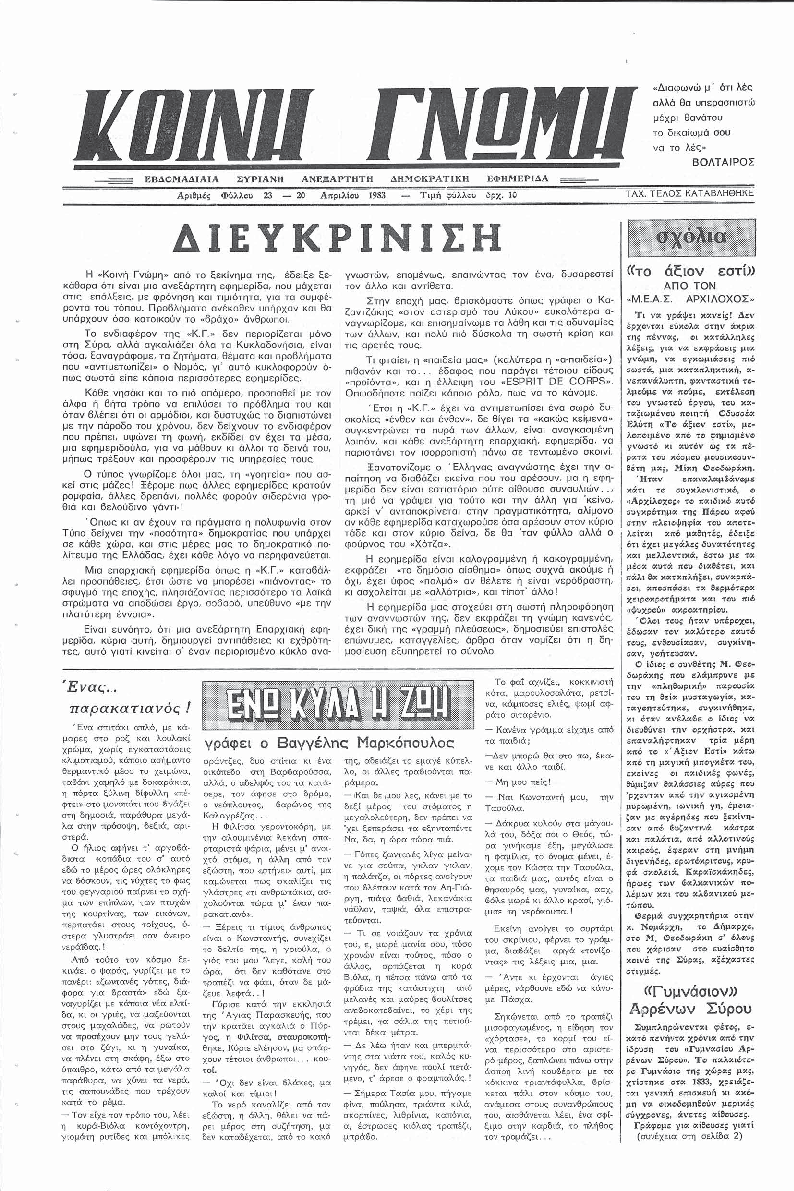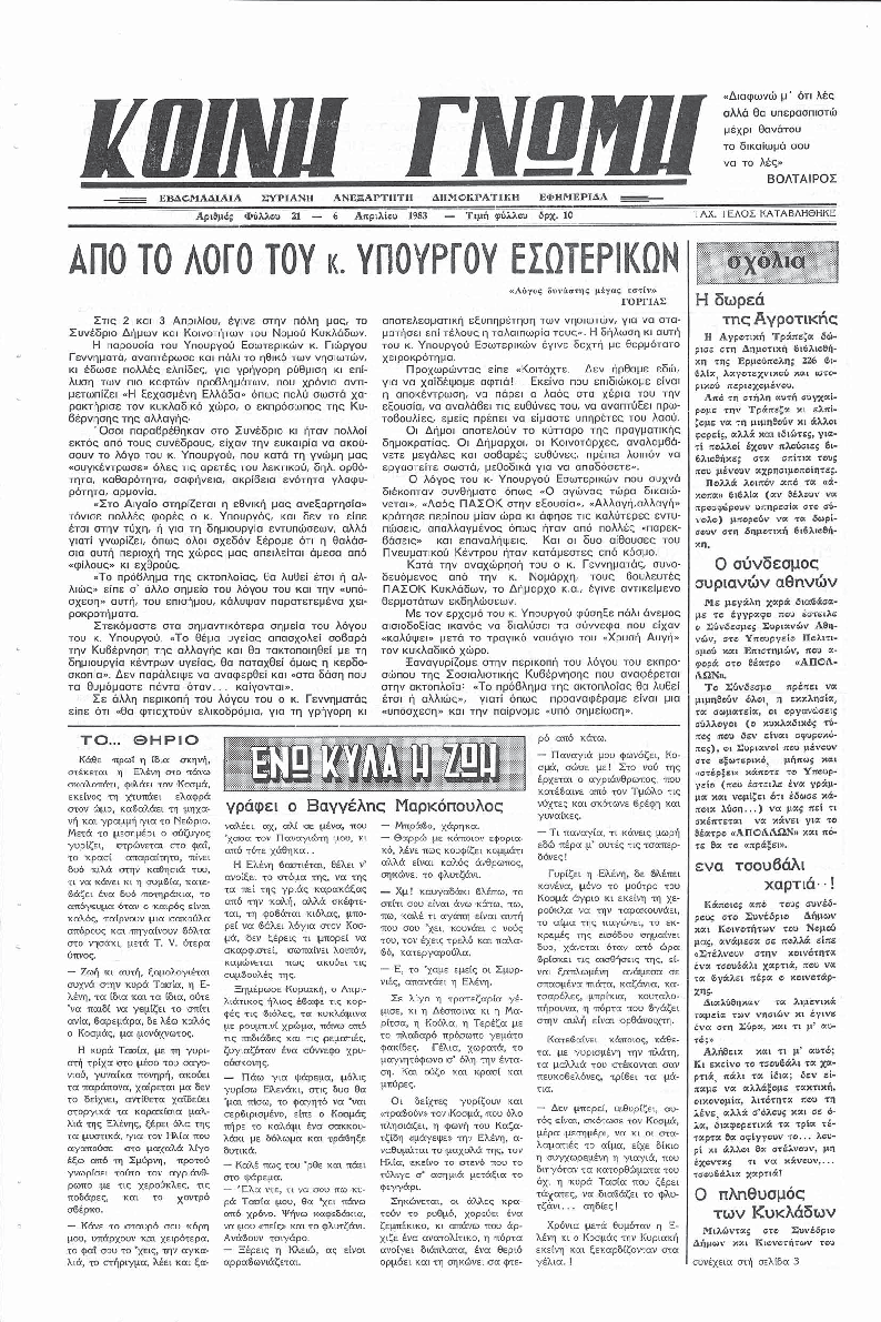 Ημερησια Εφημεριδα των Κυκλαδων