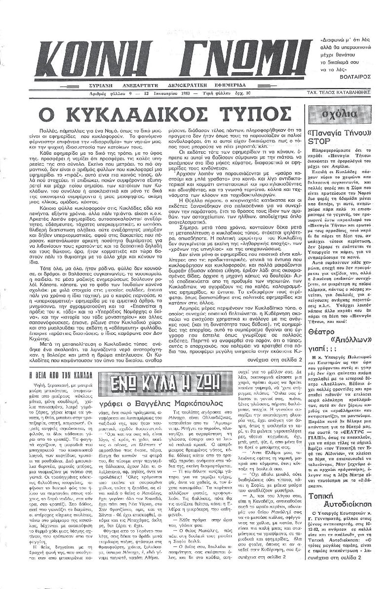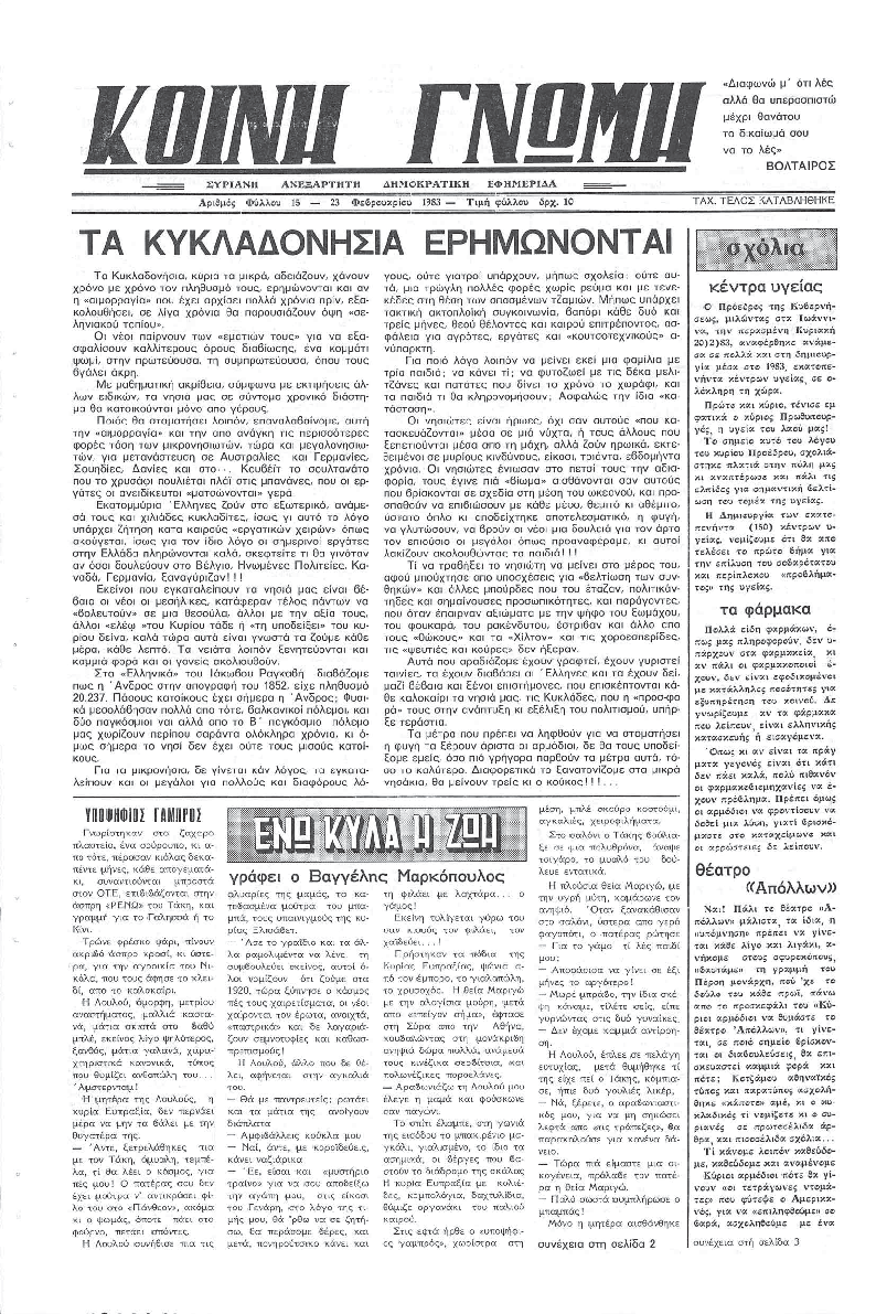 Ημερησια Εφημεριδα των Κυκλαδων