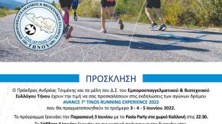 Σας ενημερώνουμε ότι, στα πλαίσια της διοργάνωσης AVANCE 7th TINOS RUNNING EXPERIENCE 2022 που θα γίνουν στις 04/06/2022 στην Τήνο, η γραμματεία των ...
