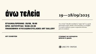 Η έκθεση με τίτλο "άνω τελεία" της ομάδας ντεφορμέ και των καλεσμένων της, στις 19- 28/9/2025, στην Πινακοθήκη Κυκλάδων. Εγκαίνια: 20/9, 19:00 και ...