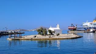 Η βραχονησίδα με την Παναγία τη Μυρτιδιώτισσα στο λιμάνι της Νάξου. Νίκος Ρούσσος