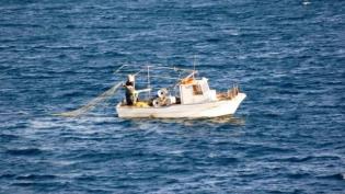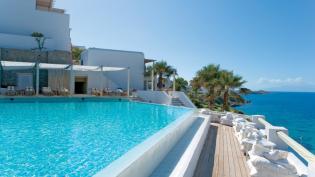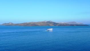 Σε φόντο μπλε... Καμένη. Σε φόντο γαλάζιο... Θηρασιά. Ηλίας Βερβενιώτης