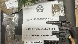 Κατασχέθηκαν 18 δενδρύλλια κάνναβης, 225 γραμμ. κατεργασμένης κάνναβης, 29γραμμ. ακατέργαστης κάνναβης και δύο περίστροφα