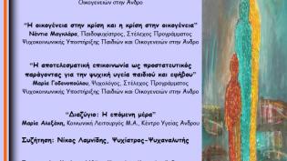 Ημερίδα με θέμα “Παιδί και οικογένεια σε καιρούς κρίσεις: προκλήσεις και διλήμματα” οργανώνει η Κινητή Μονάδα Ψυχικής Υγείας ΒΑ Κυκλάδων, Ε.Π.Α.Ψ.Υ. σ...