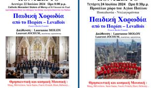 Η Παιδική χορωδία Chœur d’Enfants d’Ile-de-France, υπό τη διεύθυνση του μαέστρου Francis Bardot, θα δώσει συναυλία: · τη Δευτέρα 22 Ιουλίου,...