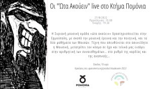 Η ΚΟΙΝΣΕΠ Απάνω Μεριά σας προσκαλεί σε μια μοναδική μουσική βραδιά, το Σάββατο 27 Αυγούστου, στο κτήμα Πομόνια, με τους Ώτα Ακούειν. Θα απολαύσουμε τη...