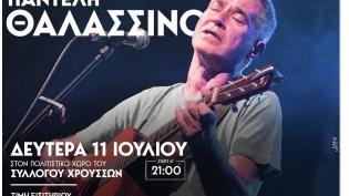 Ο Πολιτιστικός Σύλλογος Χρούσσων διοργανώνει μεγάλη συναυλία του Παντελή Θαλασσινού τη Δευτέρα 11 Ιουλίου και ώρα 21:00, στον πολιτιστικό χώρο του Συλ...