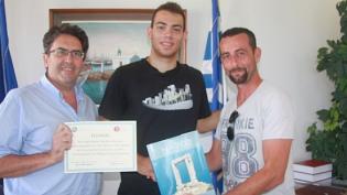Ο Δήμαρχος Νάξου και Μικρών Κυκλάδων Μανόλης Μαργαρίτης τίμησε σε ειδική εκδήλωση στο Δημαρχείο, τον Ναξιώτη διεθνή με την Εθνική Ομάδα Μπάσκετ Εφήβων...