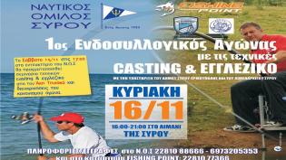 Ο Ναυτικός Όμιλος Σύρου θα διοργανώσει τον 1o Ενδοσυλλογικό Αγώνα Παράκτιας Αλιείας στο Λιμάνι της Σύρου την Κυριακή 16 Nοεμβρίου 2014. Η διάρκεια του...