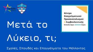 Ημερίδα Σχολικού Επαγγελματικού Προσανατολισμού με θέμα "Μετά το Λύκειο, τι; Σχολές, Σπουδές και Επαγγέλματα του Μέλλοντος", το Σάββατο 28 Μαρτίου, στ...