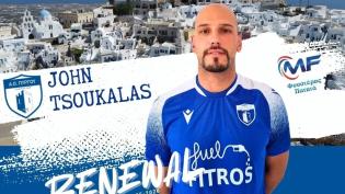 Κάτοικος Σαντορίνης για ακόμη μία χρονιά θα παραμείνει ο Γιάννης Τσουκαλάς, ο οποίος τα βρήκε σε όλα και ανανέωσε τη συνεργασία του με τον Α.Ο. Πύργου...