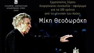 Ο Σύλλογος Μικρασιατών Ερμούπολης Σύρου διοργανώνει μουσικό αφιέρωμα στον Ασίκη Μίκη Θεοδωράκη ,100 χρόνια από τη γέννησή του με τίτλο: "Περήφανος για...