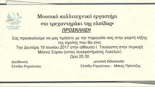 Με μία γιορτή - έκπληξη από το σύνολο των παιδιών που συμμετέχουν στο μουσικό καλλιτεχνικό εργαστήρι, το τρεχαντηράκι της ελπιδας κλείνει τον φετινό κ...