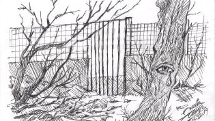 Σκίτσο του Τάκη Χάλαρη με θέμα: "Ένας χρόνος μετά την τραγωδία"