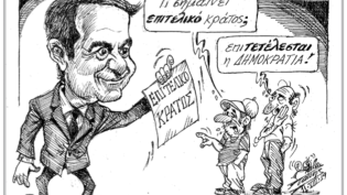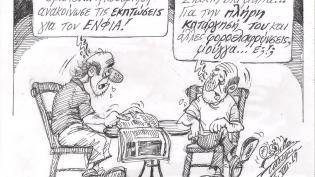 Σκίτσο του Τάκη Χάλαρη με θέμα: "Περί φοροελαφρύνσεων"