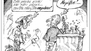Σκίτσο του Τάκη Χάλαρη με θέμα: "Σταθερότητα και αστάθεια"