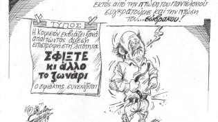 Σκίτσο του Τάκη Χάλαρη με θέμα: "Ο εφιάλτης συνεχίζεται"