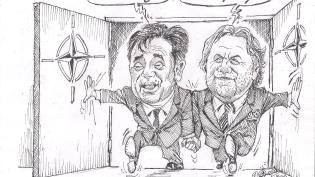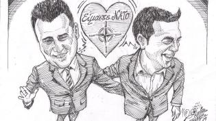 Σκίτσο του Τάκη Χάλαρη με θέμα: "Μπαίνοντας στο ΝΑΤΟ"