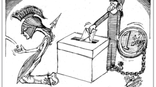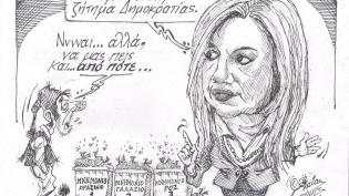 Σκίτσο του Τάκη Χάλαρη με θέμα: "Ζήτημα Δημοκρατίας"