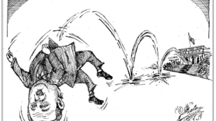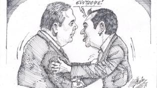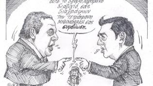 Σκίτσο του Τάκη Χάλαρη με θέμα: "Βελούδινο διαζύγιο"