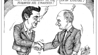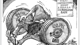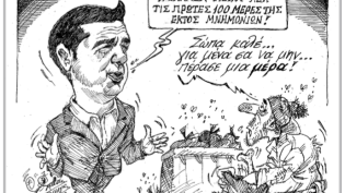 Σκίτσο του Τάκη Χάλαρη με θέμα: "Στήριξη και Ελάφρυνση"