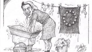 Σκίτσο του Τάκη Χάλαρη με θέμα: "Κλίμα σκανδαλολογίας..."