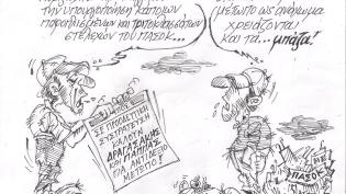 Σκίτσο του Τάκη Χάλαρη με θέμα: Μεταμνημονιακό μνημόνιο"