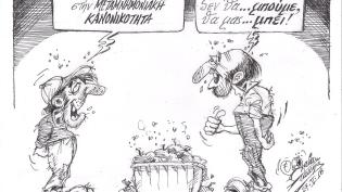 Σκίτσο του Τάκη Χάλαρη με θέμα: "Μεταμνημονιακή Κανονικότητα"