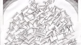 Σκίτσο του Τάκη Χάλαρη με θέμα: "Πολυνομοσχέδιο Πολυσέλιδο"