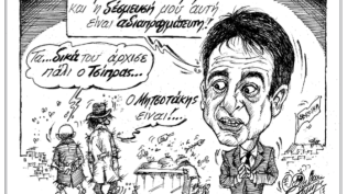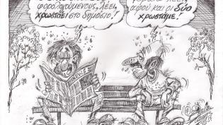 Σκίτσο του Τάκη Χάλαρη με θέμα: "Κινδυνεύουν οι εγγυητές"