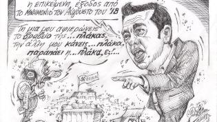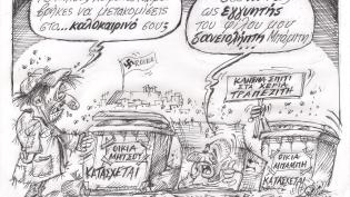 Σκίτσο του Τάκη Χάλαρη με θέμα: "Στηρίζει τις απεργίες"